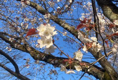 今年は桜の開花は例年よりも早く、祝祭当日は満開が過ぎ、プレーマ・アーシュラマ近辺の桜は新緑へと移り変わりつつありました。春の雨で大気はみずみずしく潤っていました。