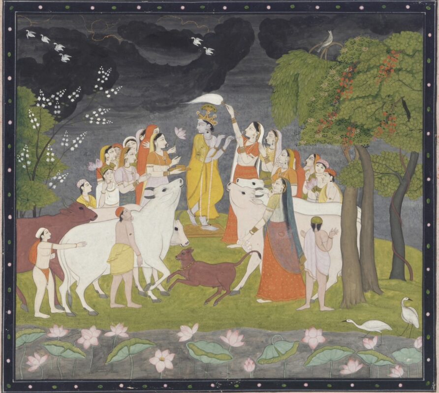 ※Web版『パラマハンサ』のサンプル版でこの細密画が詳しく紹介されている「バーガヴァタ・プラーナ細密画シリーズ(1)」がお読みいただけます!