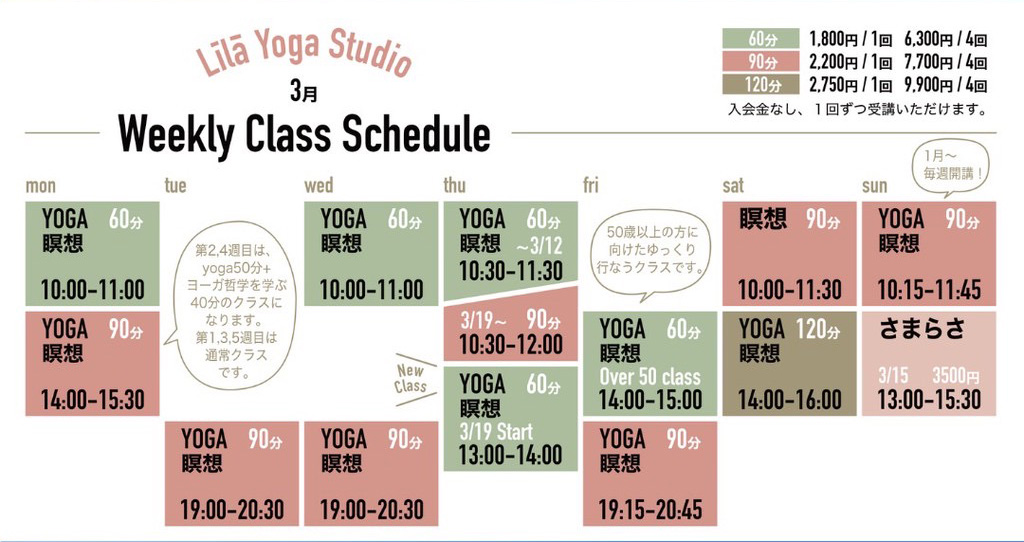 - 3月19日より木曜朝クラスが90分クラスに、午後のクラスもスタート