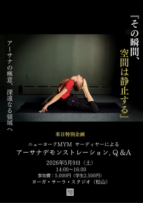 「来日特別公演:ニューヨークMYM サーディヤーによるアーサナデモンストレーション、Q&A」in 松山のご案内